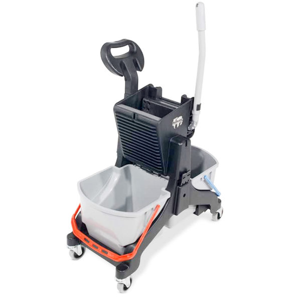 Chariot double seau – 2×16 litres + presse + support mop.